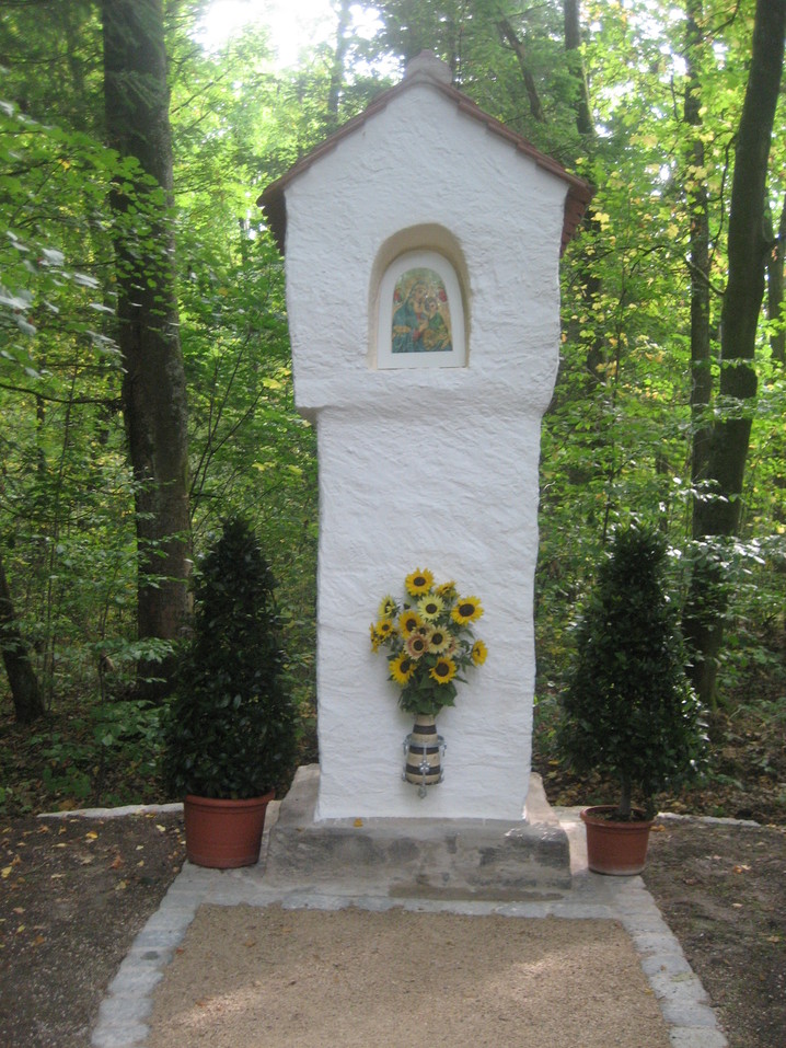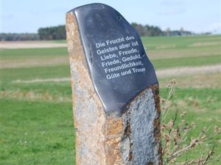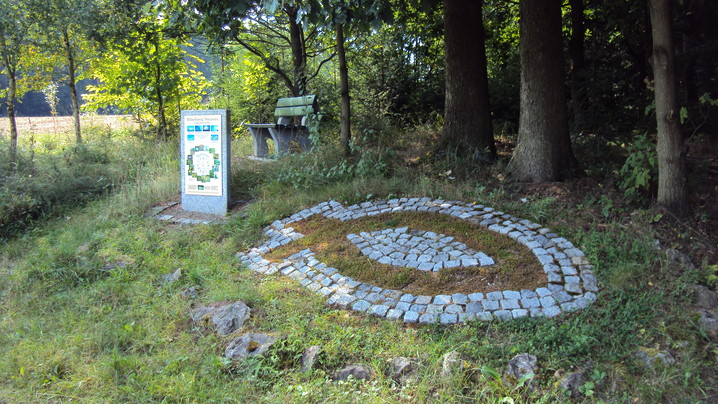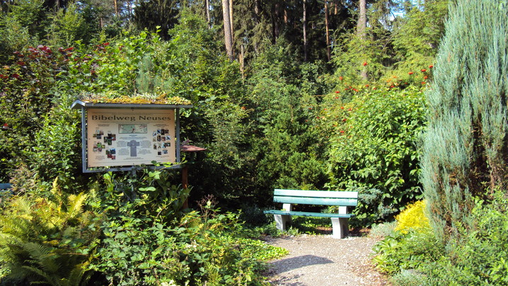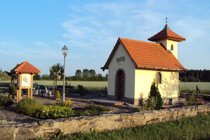 Verschiedene Stationen, wie mehrere Basaltstelen, eine Schutzengelkapelle mit Bibelgarten, der Fisch, im Ruhebereich ein Schöpfungsort, das Marterl usw. säumen den Weg.