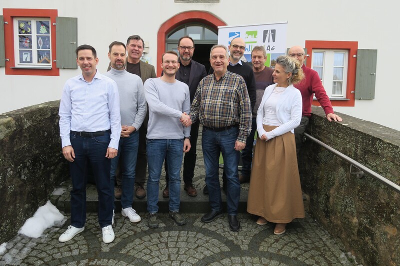 Die Mitglieder des Zweckverbands Altmühlland A6 vor dem Rathaus in Aurach.